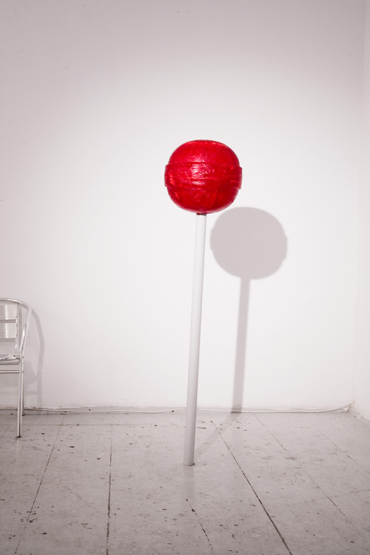 A giant lolly made from real sugar with strawberry aroma, which you could smell already before seeing the work. The smell, an invisible sculpture which slips unseen into your body.