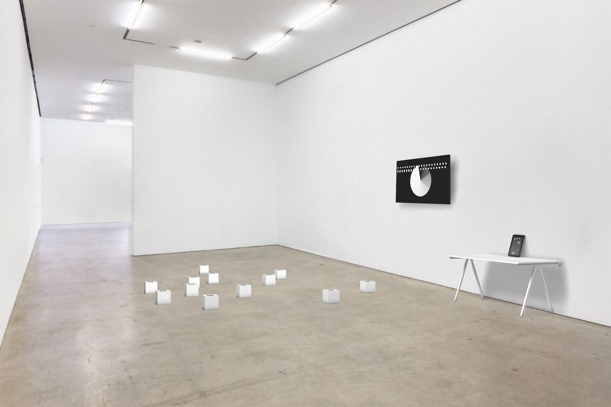 It is a modular, scale-able, site-specific networked sculpture for spatial settings of any scale and duration; from private digital space to larger scale white-cube settings. Due to the modular approach these works can be combined in various ways and form an adaptive networked sculpture.